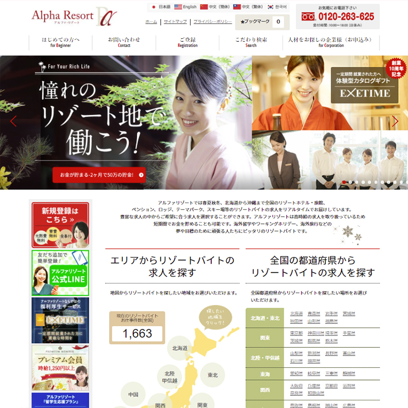 全国有名リゾートホテル・旅館・ リゾート施設・スキー場等などの様々なリゾートバイトが探せるアルファリゾート。短期・長期の求人情報を500件以上掲載!留学やワーキングホリデーなどのま...